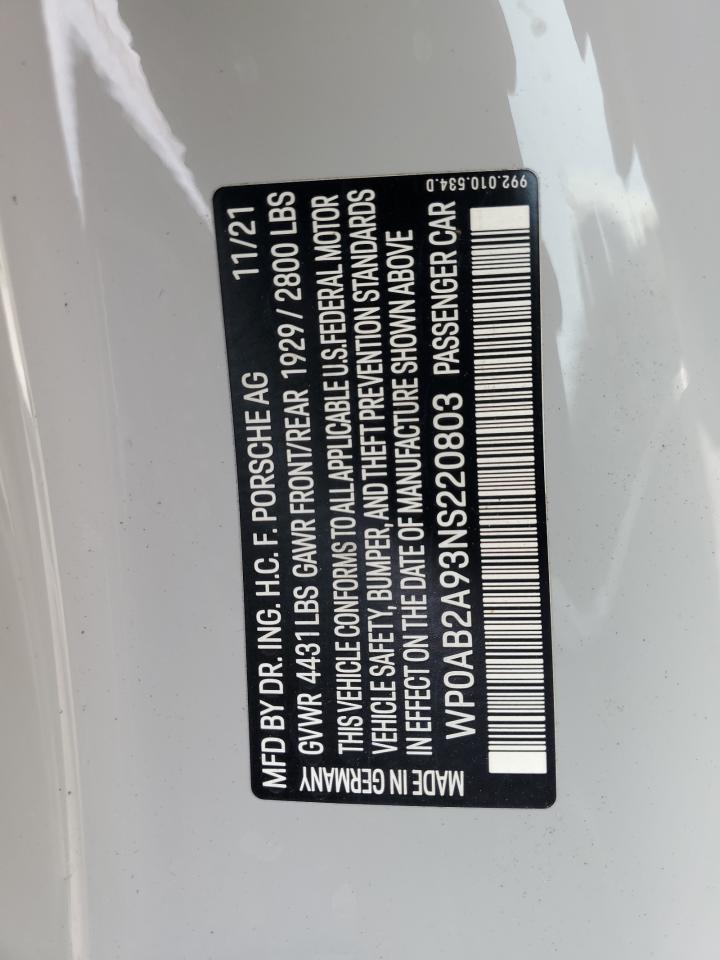 2022 Porsche 911 carrer – WP0AB2A93NS220803