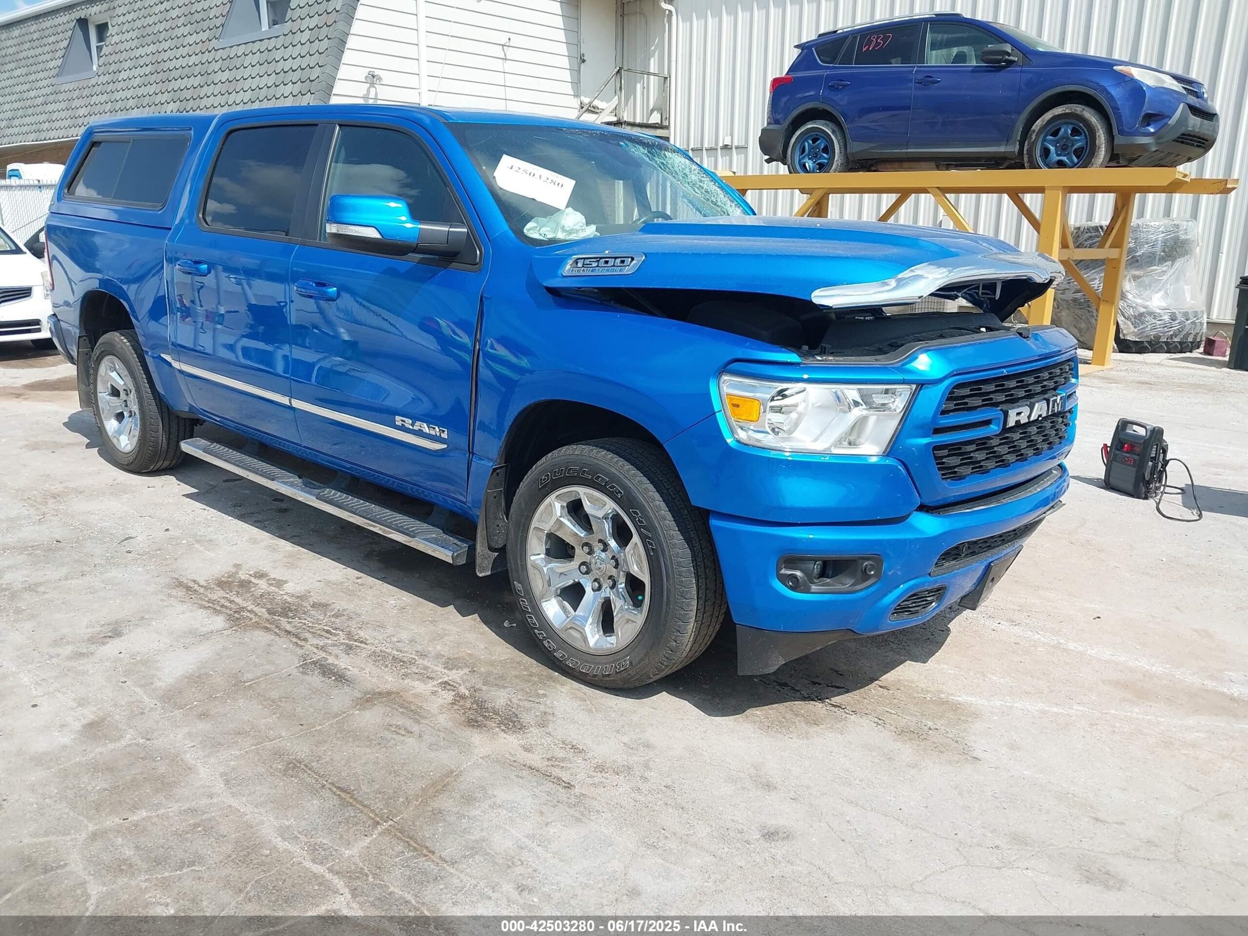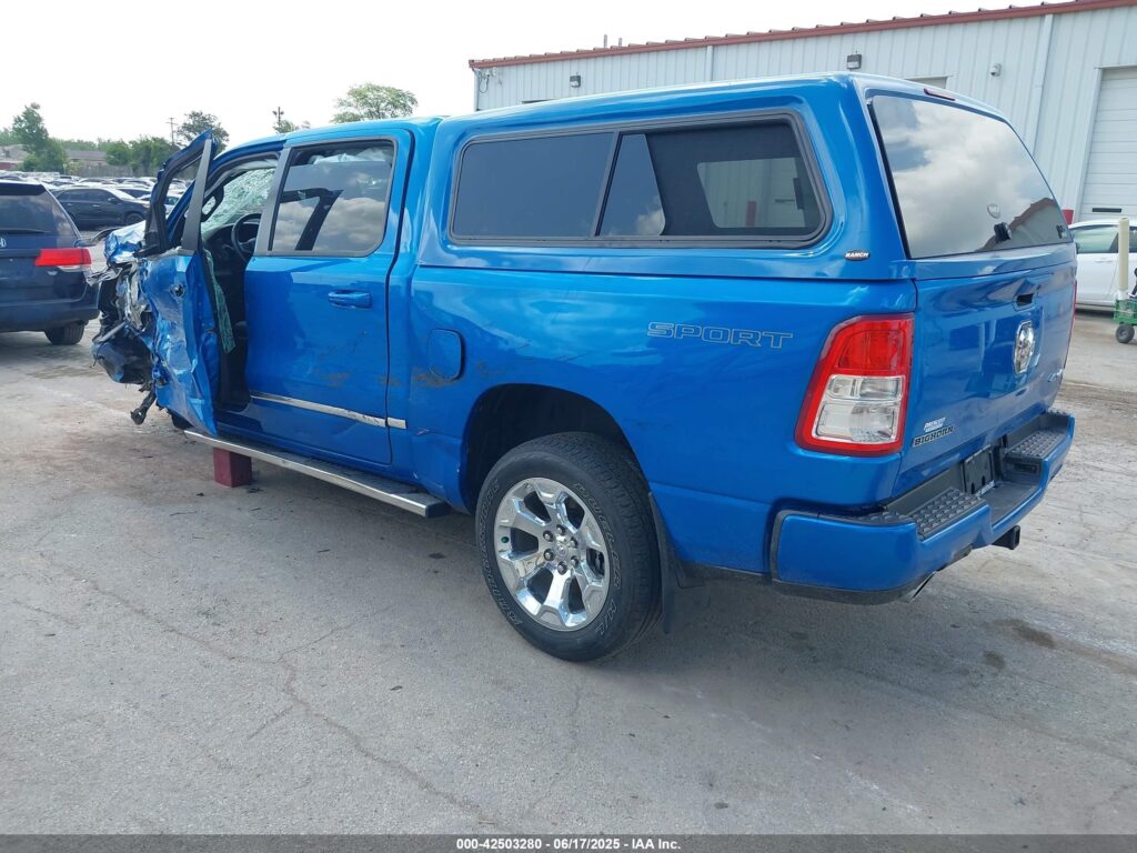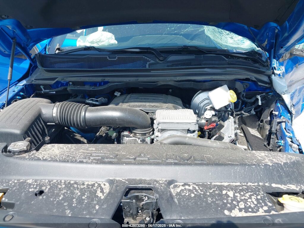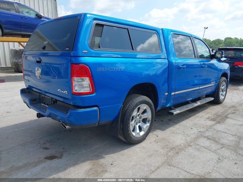 This 2022 Ram 1500 (Blue) is equipped with an engine designed to balance performance and efficiency. According to the auction listing, the vehicle had 34,206 miles at the time of sale.