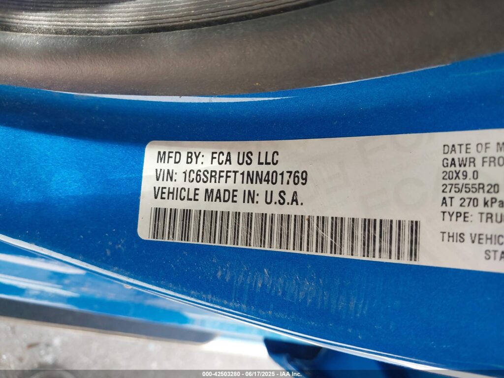 VIN: 1C6SRFFT1NN401769