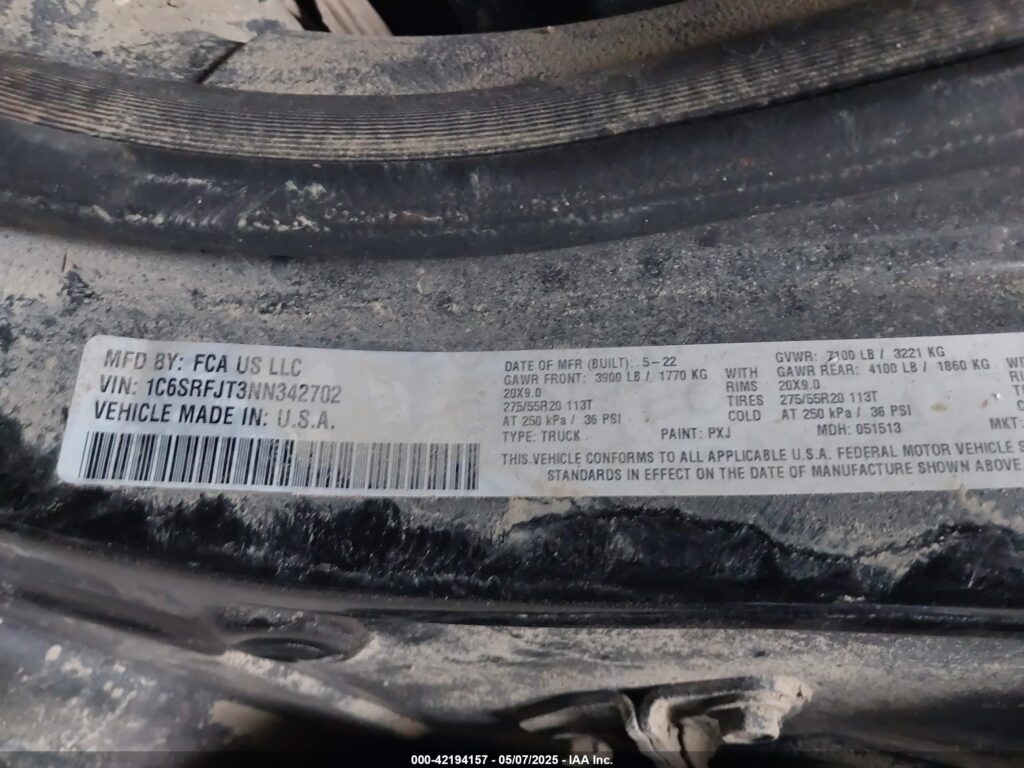 | VIN Number | 1C6SRFJT3NN342702 |