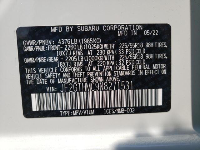 This 2022 Subaru Crosstrek (White) comes from a major insurance auction in the USA or Canada. All information on this page is linked to the vehicle’s VIN (JF2GTHMC9N8271531), which helps confirm where the car was listed and what condition it was in at the time of sale.