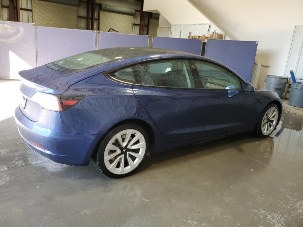 This 2022 Tesla Model 3 (Blue) is equipped with an engine designed to balance performance and efficiency. According to the auction listing, the vehicle had 12,132 miles at the time of sale.