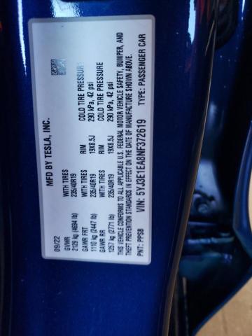 This 2022 TESLA MODEL 3 (BLUE) comes from a major insurance auction in the USA or Canada. All information on this page is linked to the vehicle’s VIN (5YJ3E1EA8NF372619), which helps confirm where the car was listed and what condition it was in at the time of sale.