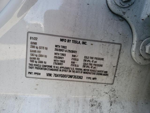 This 2022 Tesla Model Y (White) comes from a major insurance auction in the USA or Canada. All information on this page is linked to the vehicle’s VIN (7SAYGDEF3NF353363), which helps confirm where the car was listed and what condition it was in at the time of sale.