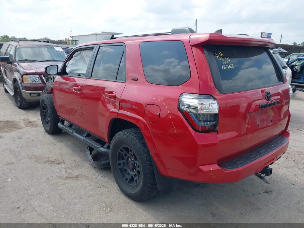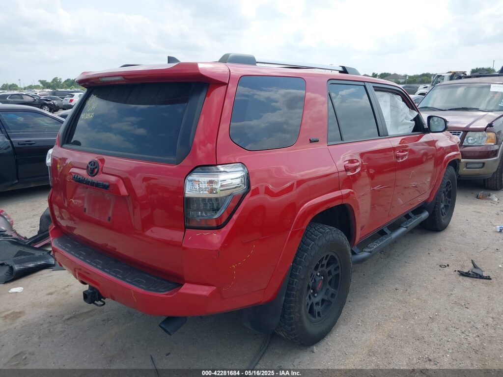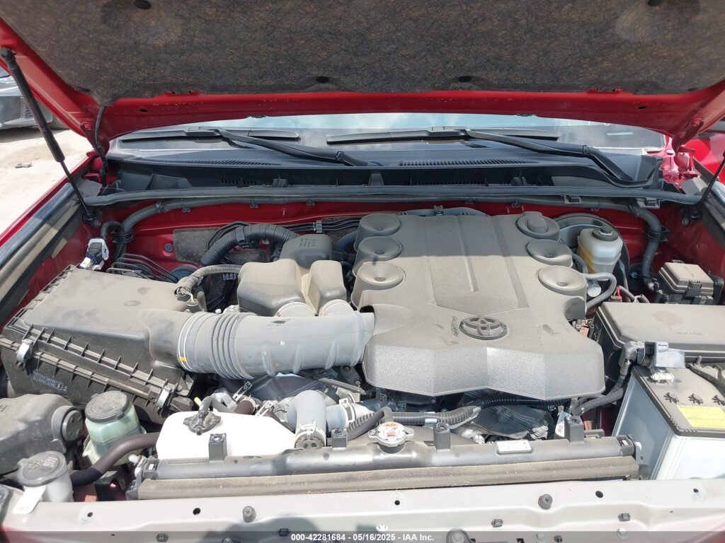 This 2022 Toyota 4Runner (Red) is equipped with an engine designed to balance performance and efficiency. According to the auction listing, the vehicle had 21,849 miles at the time of sale.
