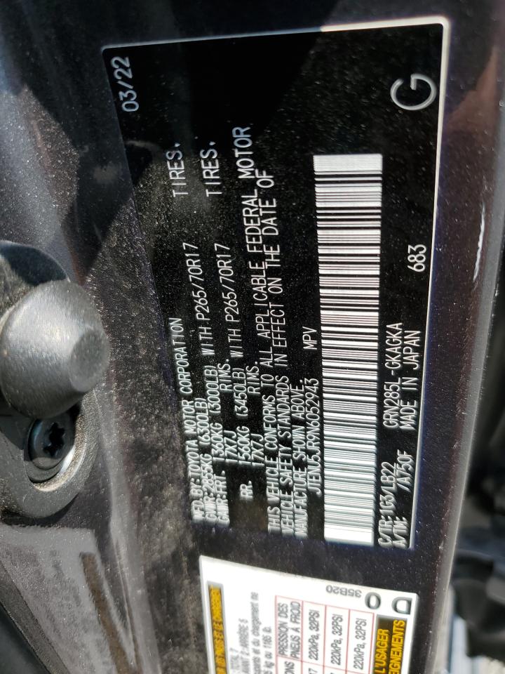 This 2022 Toyota 4Runner (Charcoal) comes from a major insurance auction in the USA or Canada. All information on this page is linked to the vehicle’s VIN (JTENU5JR9N6052943), which helps confirm where the car was listed and what condition it was in at the time of sale.