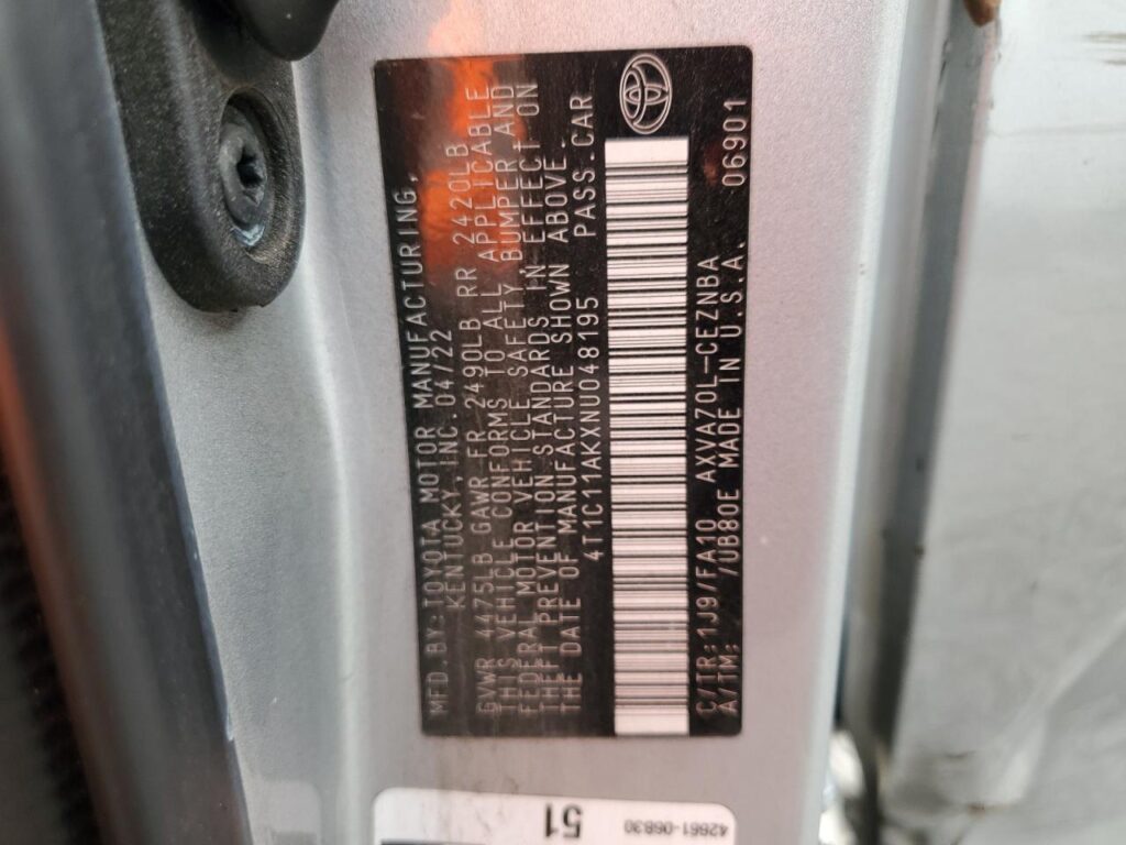 This 2022 Toyota Camry (Silver) comes from a major insurance auction in the USA or Canada. All information on this page is linked to the vehicle’s VIN (4T1C11AKXNU048195), which helps confirm where the car was listed and what condition it was in at the time of sale.