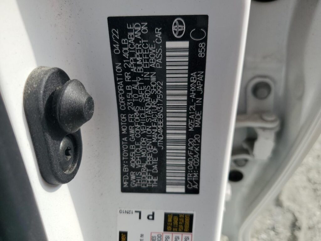 This 2022 Toyota Corolla (White) comes from a major insurance auction in the USA or Canada. All information on this page is linked to the vehicle’s VIN (JTND4MBE8N3175992), which helps confirm where the car was listed and what condition it was in at the time of sale.