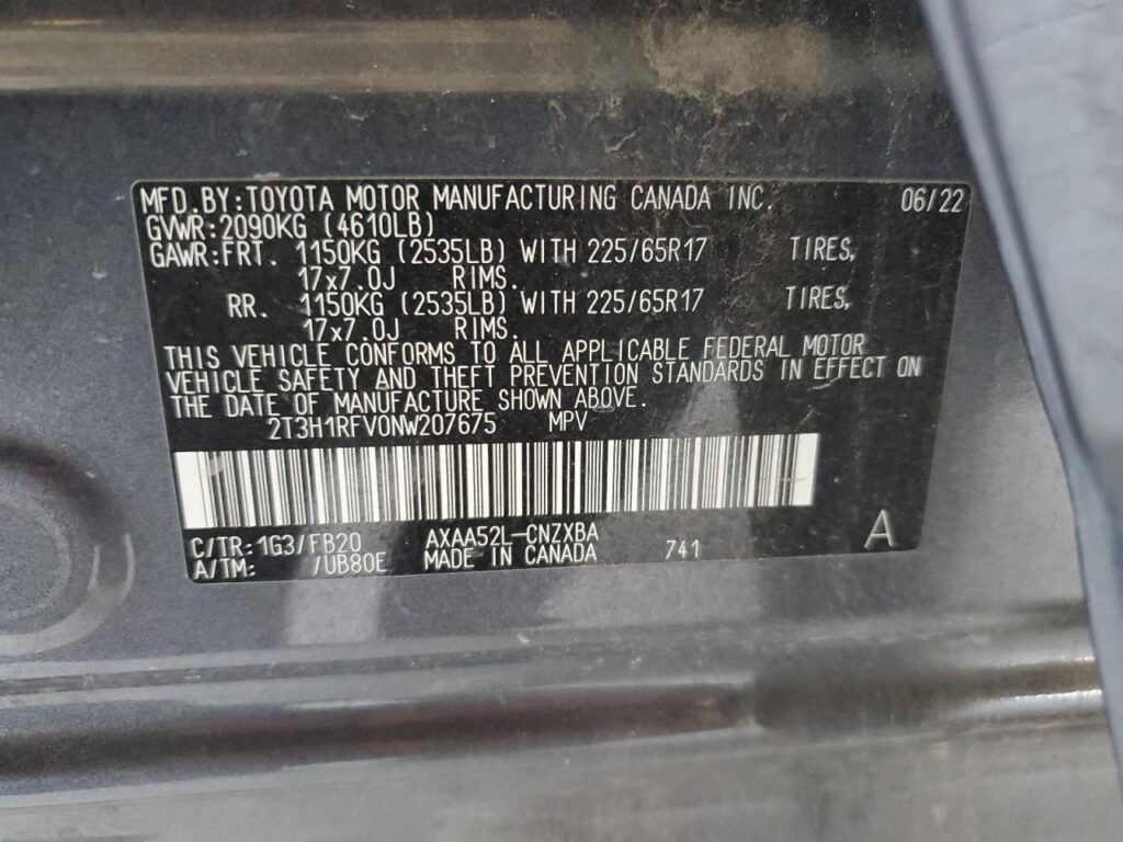 | VIN Number | 2T3H1RFV0NW207675 |