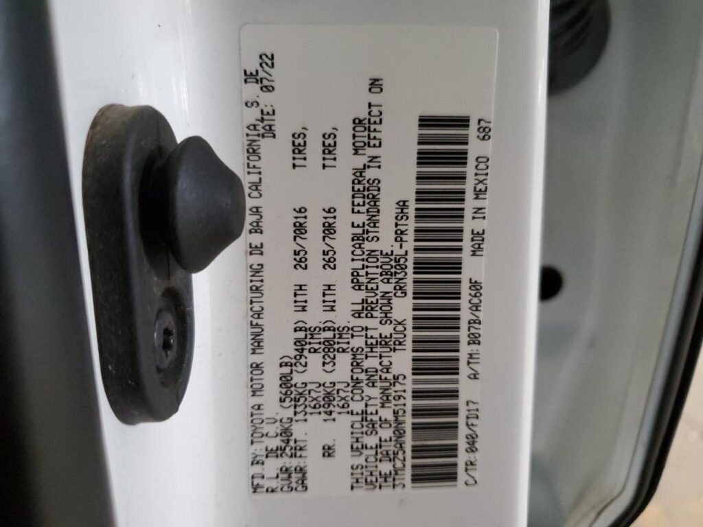 This 2022 TOYOTA TACOMA (WHITE) comes from a major insurance auction in the USA or Canada. All information on this page is linked to the vehicle’s VIN (3TMCZ5AN0NM519175), which helps confirm where the car was listed and what condition it was in at the time of sale.