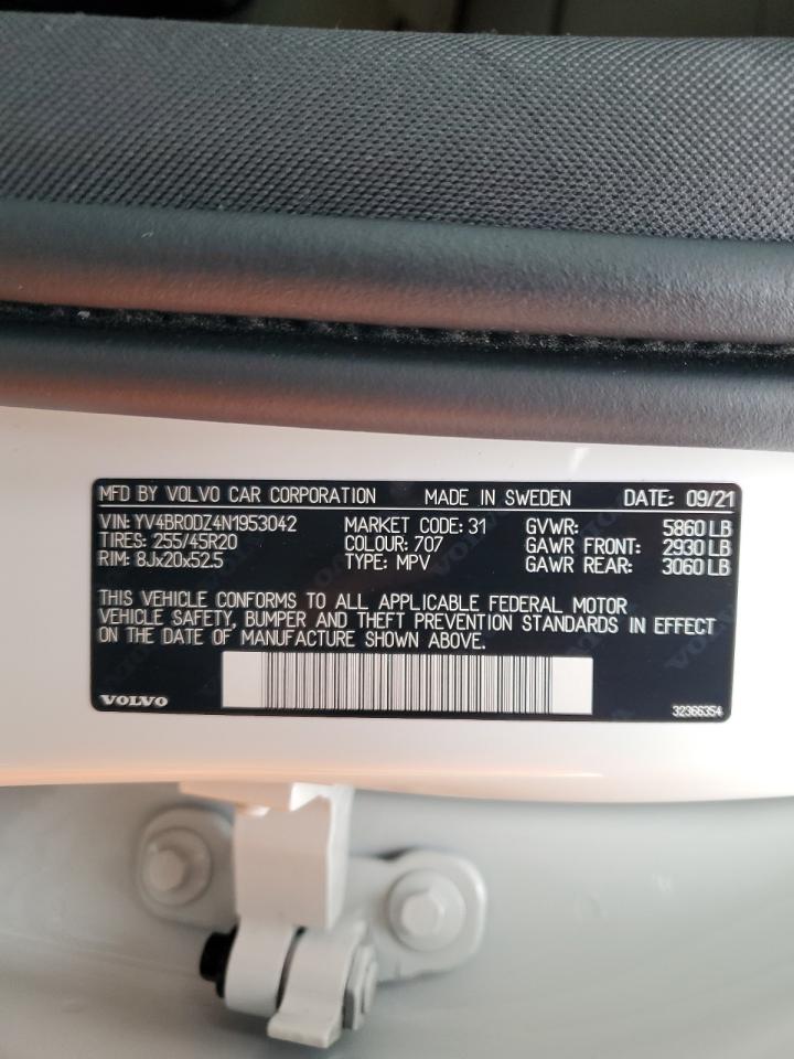 This 2022 Volvo XC60 (White) comes from a major insurance auction in the USA or Canada. All information on this page is linked to the vehicle’s VIN (YV4BR0DZ4N1953042), which helps confirm where the car was listed and what condition it was in at the time of sale.
