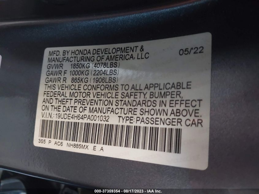 VIN: 19UDE4H64PA001032