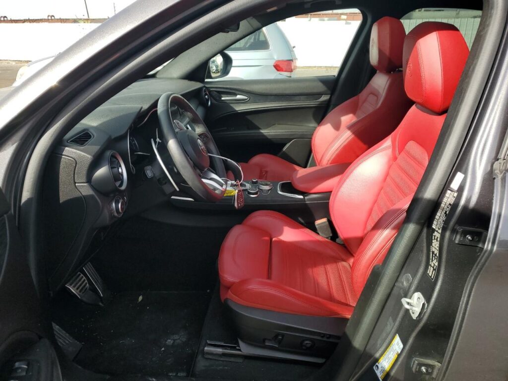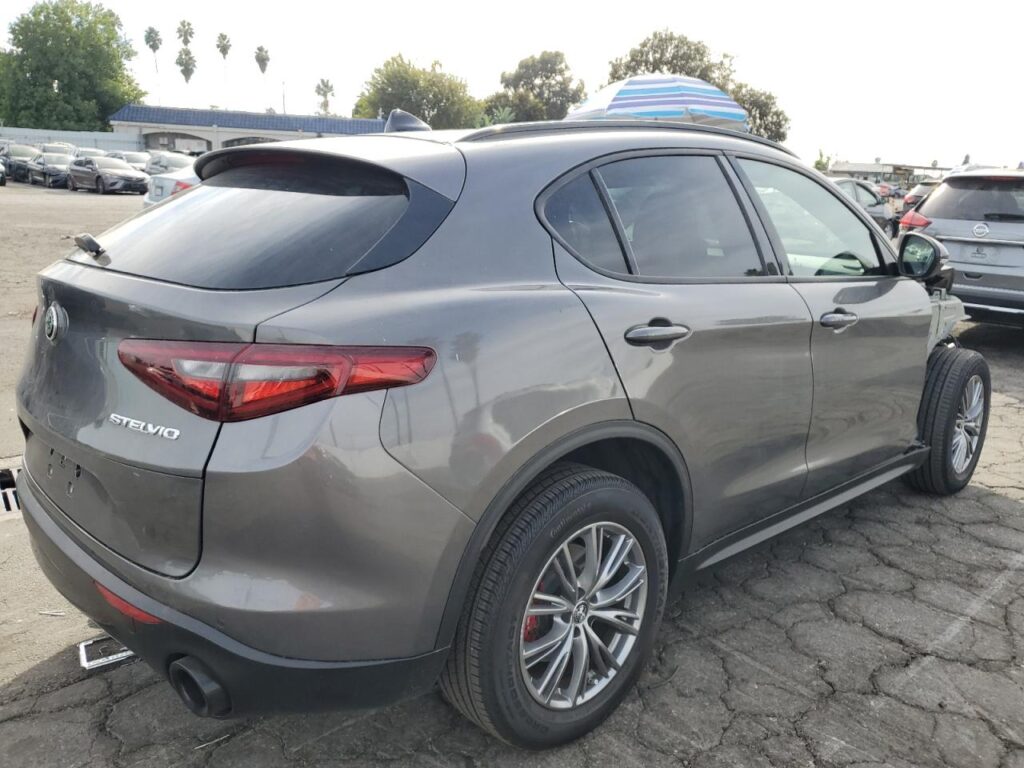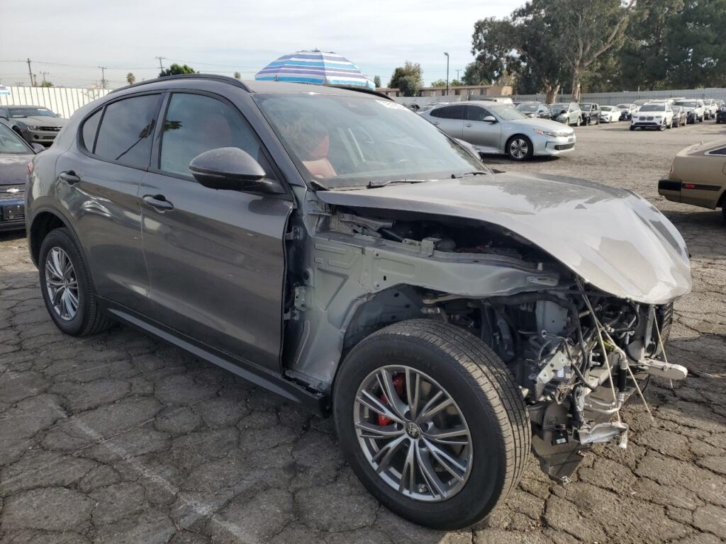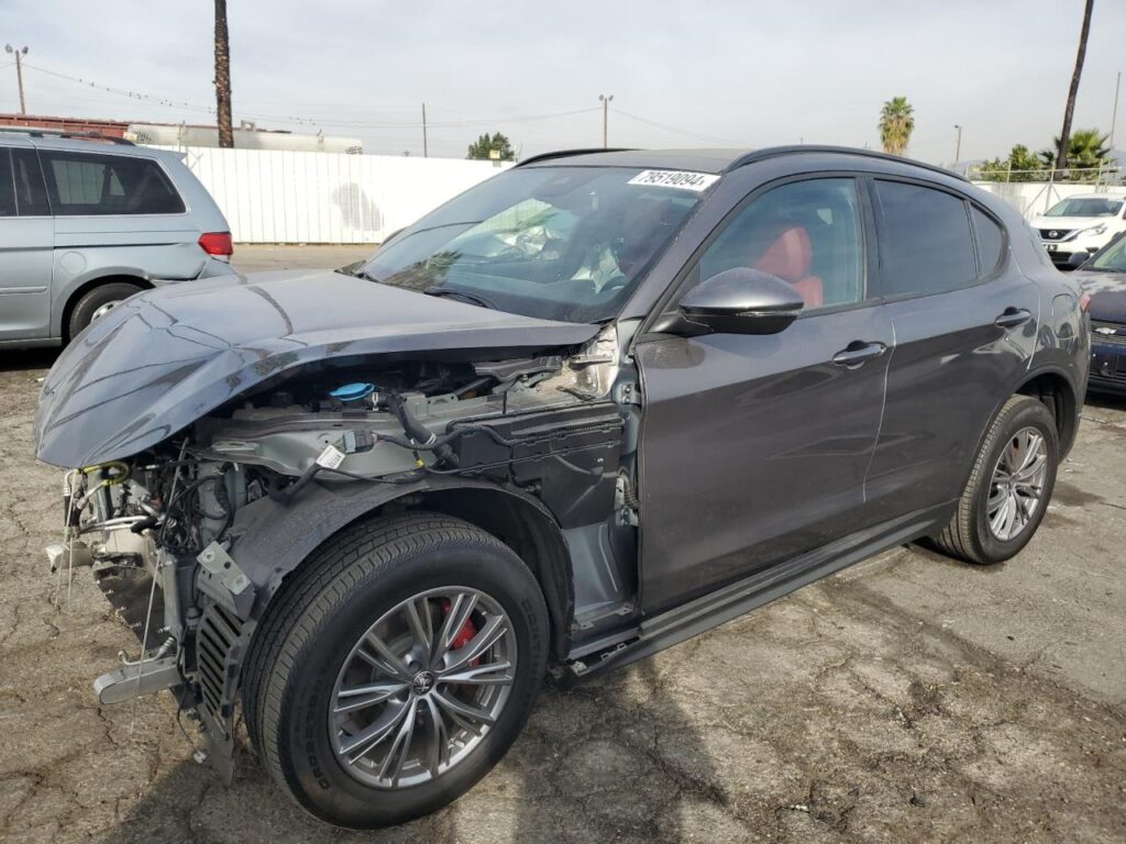 This 2023 ALFA ROMEO STELVIO (GRAY) is equipped with an engine designed to balance performance and efficiency. According to the auction listing, the vehicle had 9,596 miles at the time of sale.