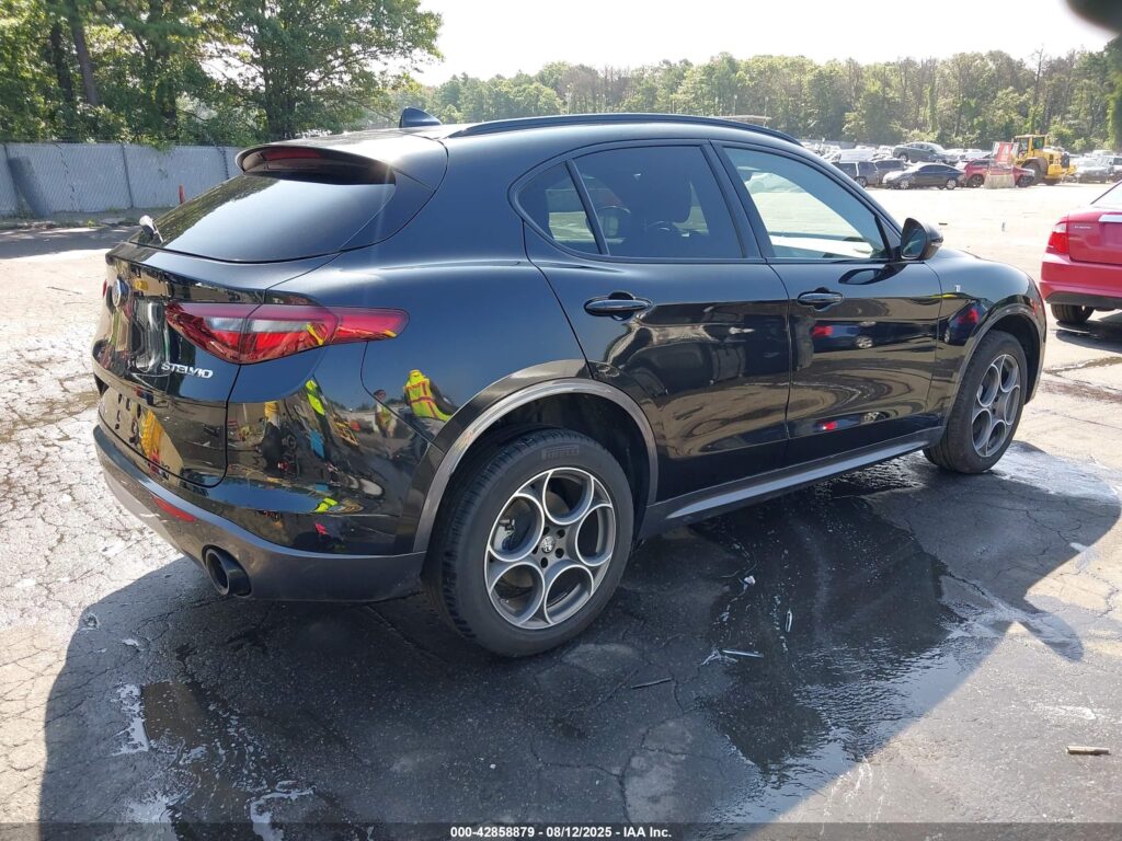 This 2023 Alfa romeo Stelvio (Black) is equipped with an engine designed to balance performance and efficiency. According to the auction listing, the vehicle had 14,448 miles at the time of sale.