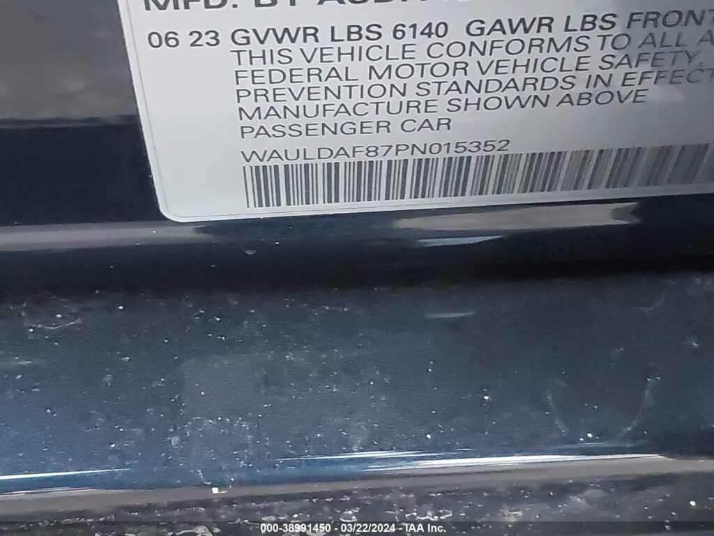 This 2023 Audi A8 (Black) comes from a major insurance auction in the USA or Canada. All information on this page is linked to the vehicle’s VIN (WAULDAF87PN015352), which helps confirm where the car was listed and what condition it was in at the time of sale.
