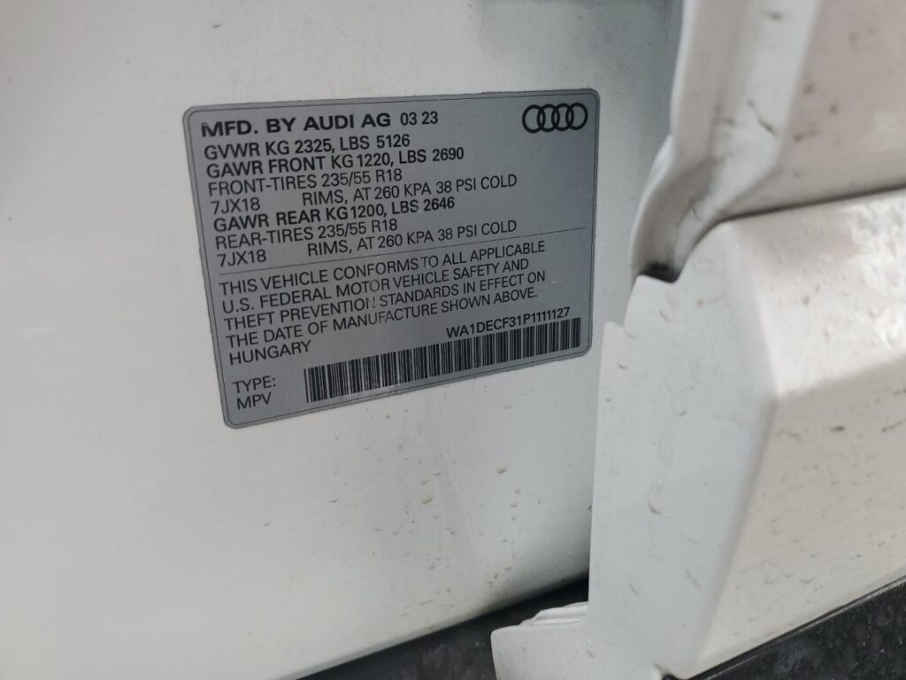 This 2023 AUDI Q3 (WHITE) comes from a major insurance auction in the USA or Canada. All information on this page is linked to the vehicle’s VIN (WA1DECF31P1111127), which helps confirm where the car was listed and what condition it was in at the time of sale.
