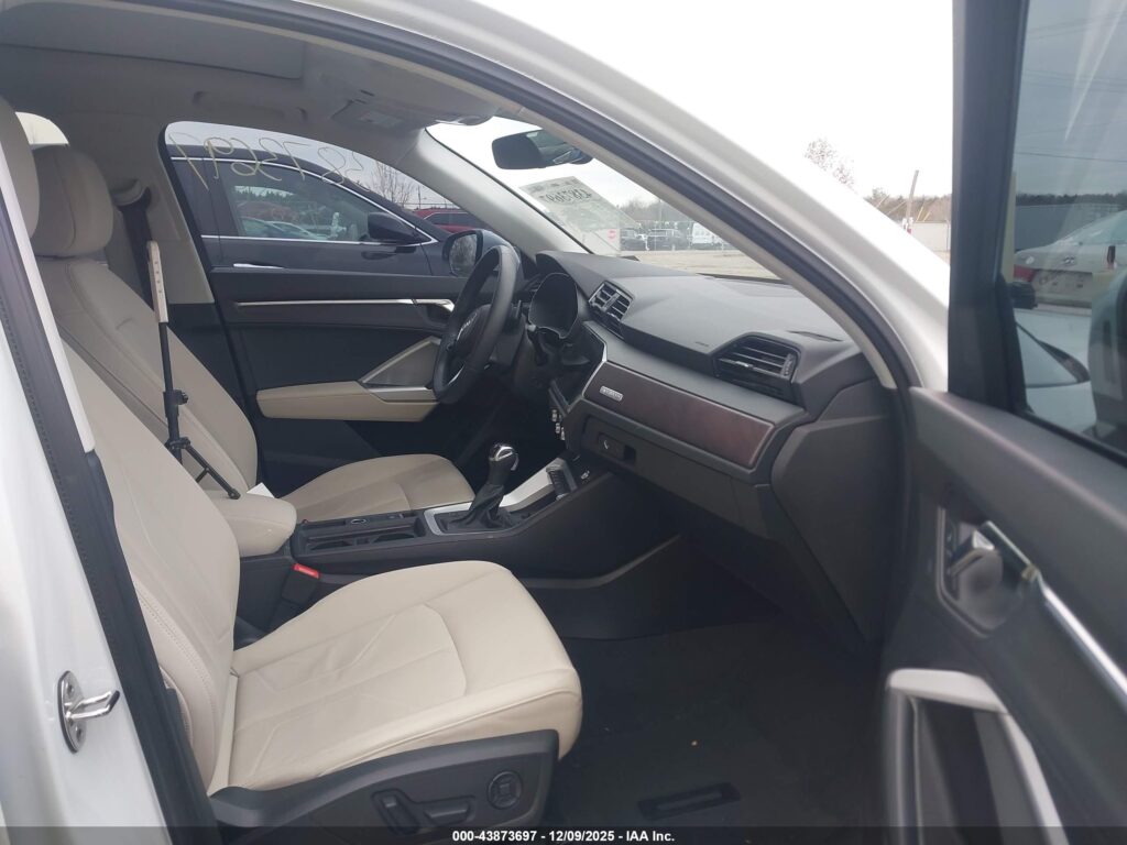This 2023 Audi Q3 (White) is equipped with an engine designed to balance performance and efficiency. According to the auction listing, the vehicle had 29,498 miles at the time of sale.