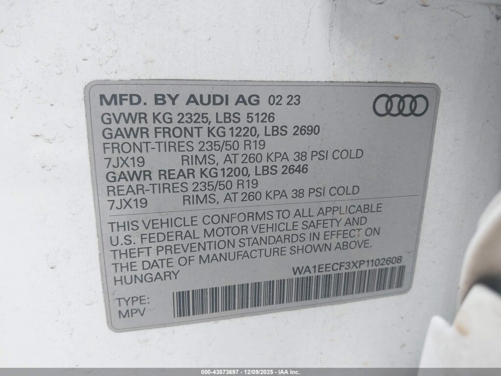 | VIN Number | WA1EECF3XP1102608 |