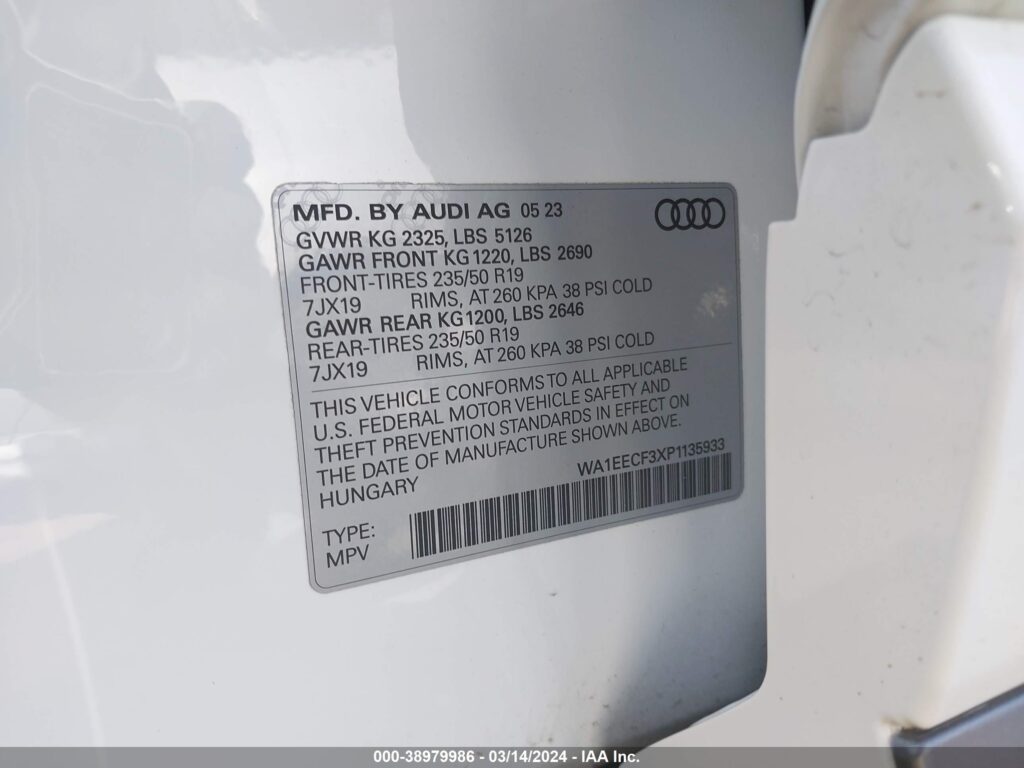 This 2023 Audi Q3 (White) comes from a major insurance auction in the USA or Canada. All information on this page is linked to the vehicle’s VIN (WA1EECF3XP1135933), which helps confirm where the car was listed and what condition it was in at the time of sale.