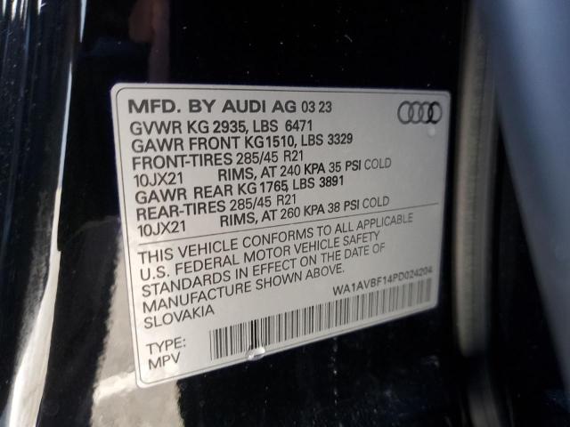 This 2023 Audi Q8 (Black) comes from a major insurance auction in the USA or Canada. All information on this page is linked to the vehicle’s VIN (WA1AVBF14PD024204), which helps confirm where the car was listed and what condition it was in at the time of sale.