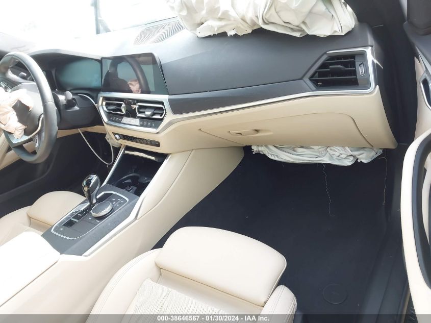 This 2023 BMW 4 Series (White) is equipped with an engine designed to balance performance and efficiency. According to the auction listing, the vehicle had 19,565 miles at the time of sale.