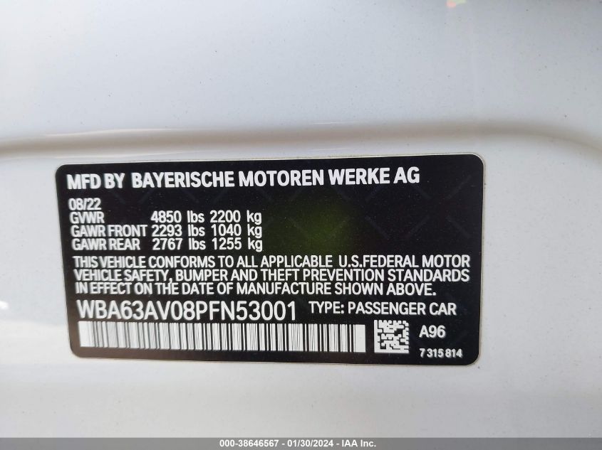 VIN: WBA63AV08PFN53001