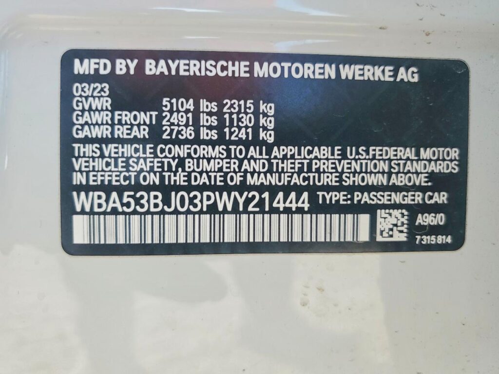 | VIN Number | WBA53BJ03PWY21444 |