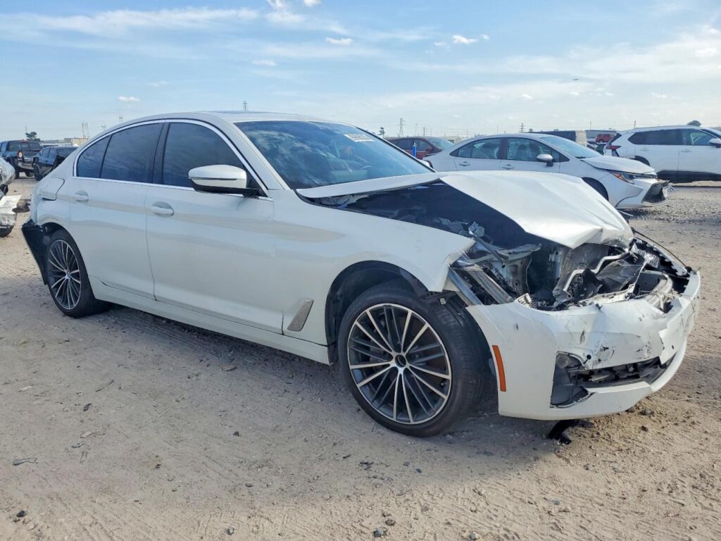 This 2023 BMW 5 Series (White) is equipped with an engine designed to balance performance and efficiency. According to the auction listing, the vehicle had mileage not provided at the time of sale.