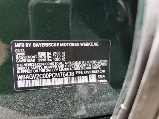 This 2023 BMW 8 Series (Green) comes from a major insurance auction in the USA or Canada. All information on this page is linked to the vehicle’s VIN (WBAGV2C00PCM76438), which helps confirm where the car was listed and what condition it was in at the time of sale.