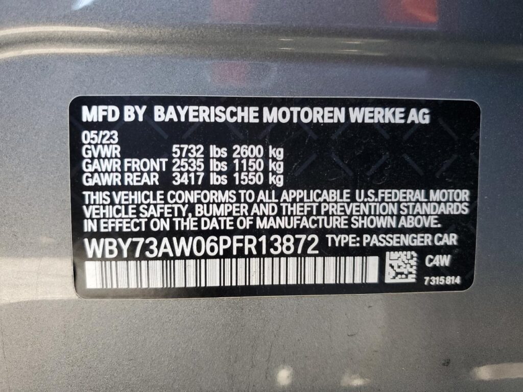 This 2023 BMW I4 EDRIVE (GRAY) comes from a major insurance auction in the USA or Canada. All information on this page is linked to the vehicle’s VIN (WBY73AW06PFR13872), which helps confirm where the car was listed and what condition it was in at the time of sale.