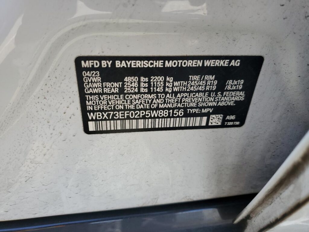 This 2023 BMW X1 (WHITE) comes from a major insurance auction in the USA or Canada. All information on this page is linked to the vehicle’s VIN (WBX73EF02P5W88156), which helps confirm where the car was listed and what condition it was in at the time of sale.