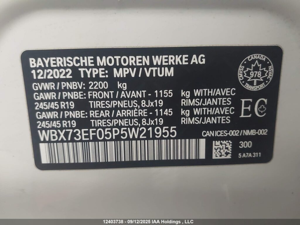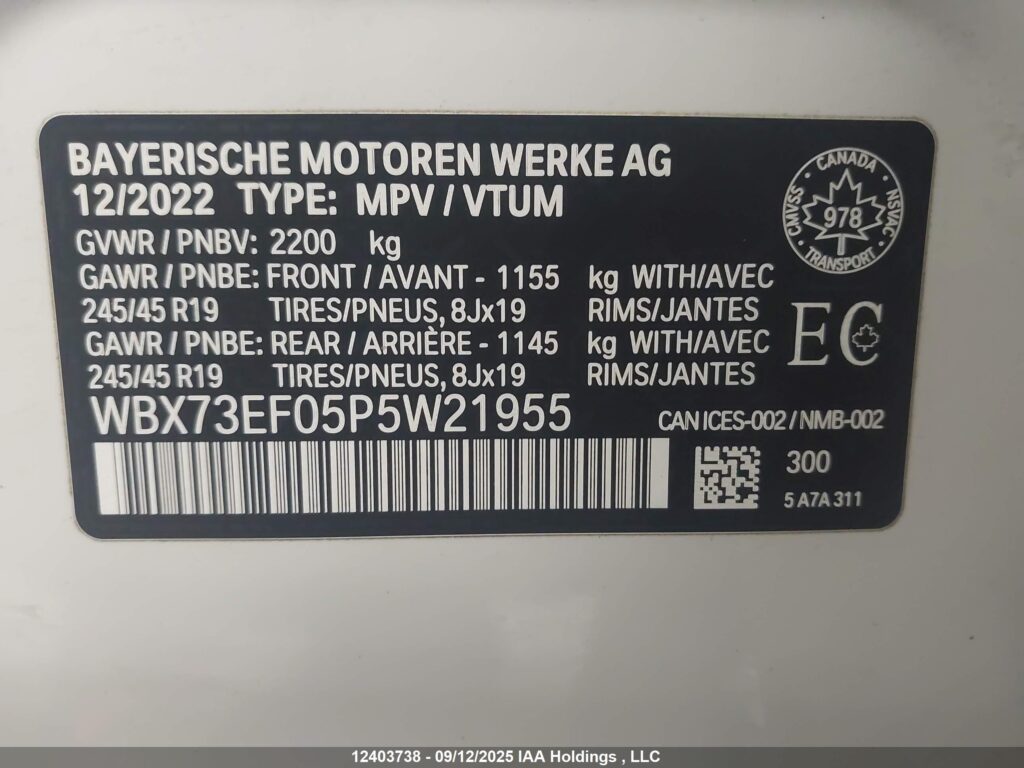 This 2023 BMW X1 (Black) comes from a major insurance auction in the USA or Canada. All information on this page is linked to the vehicle’s VIN (WBX73EF05P5W21955), which helps confirm where the car was listed and what condition it was in at the time of sale.