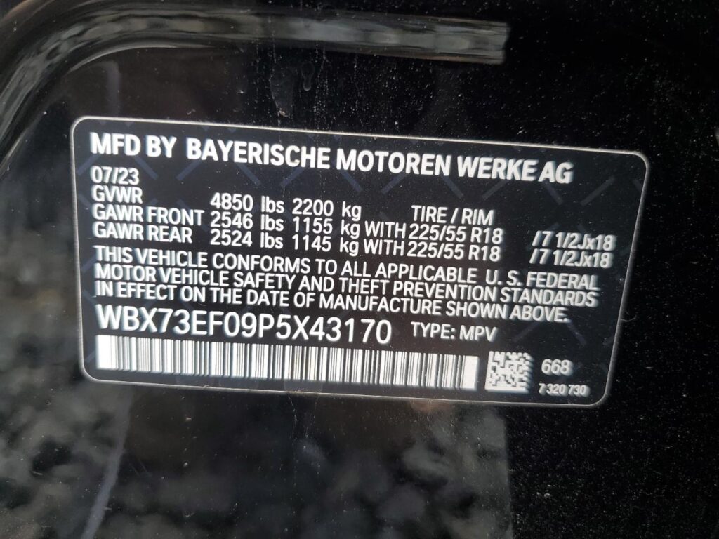 This 2023 BMW X1 (BLACK) comes from a major insurance auction in the USA or Canada. All information on this page is linked to the vehicle’s VIN (WBX73EF09P5X43170), which helps confirm where the car was listed and what condition it was in at the time of sale.