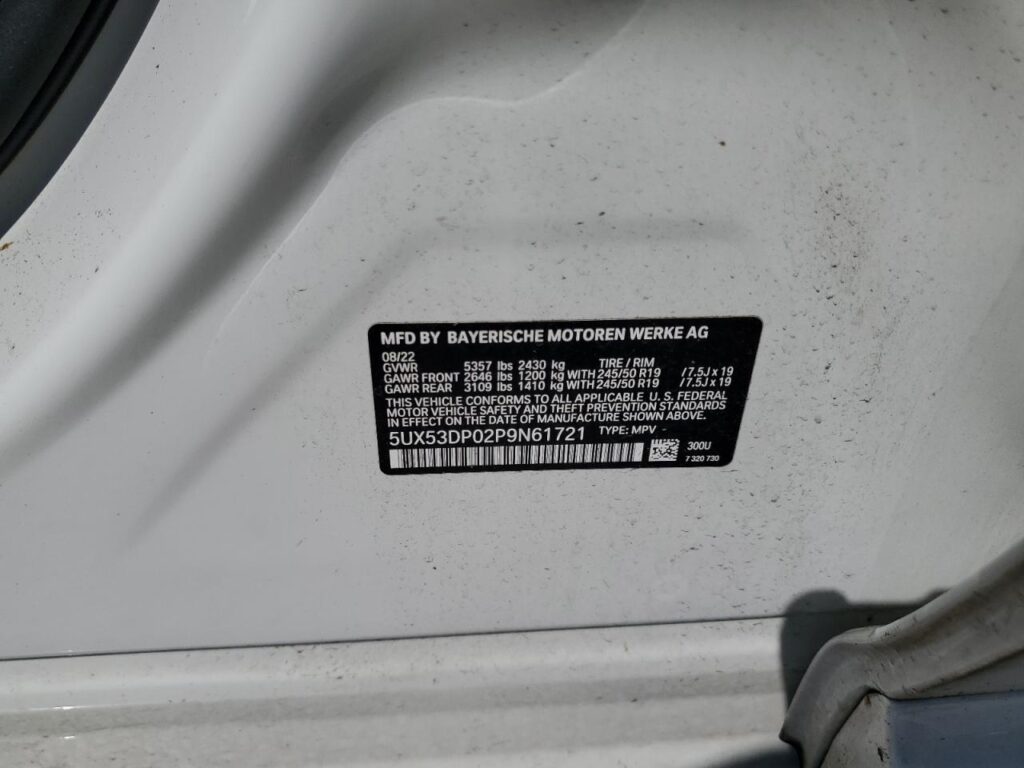 This 2023 BMW X3 (White) comes from a major insurance auction in the USA or Canada. All information on this page is linked to the vehicle’s VIN (5UX53DP02P9N61721), which helps confirm where the car was listed and what condition it was in at the time of sale.