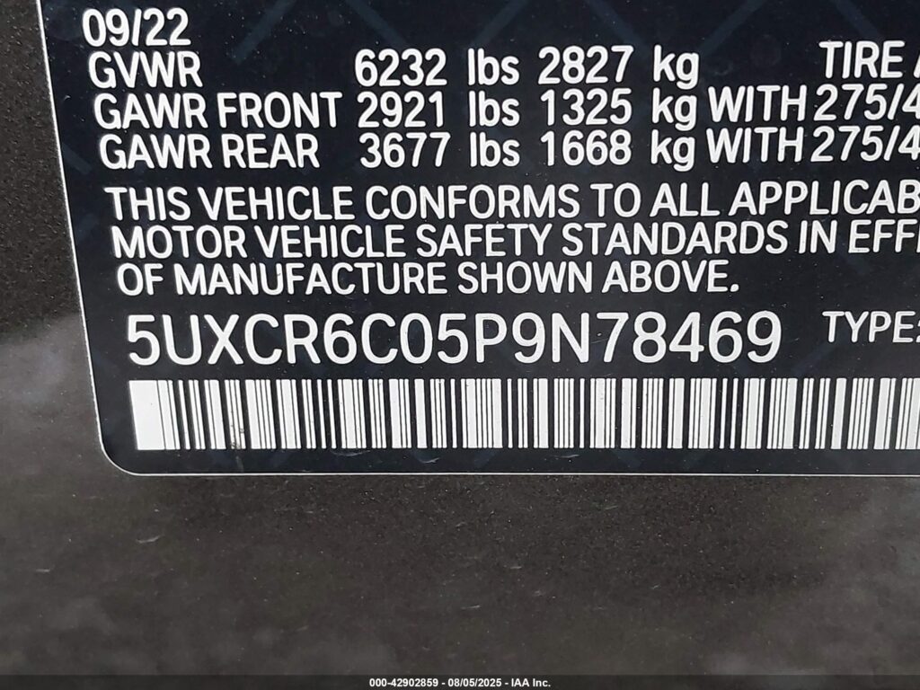 VIN Number5UXCR6C05P9N78469