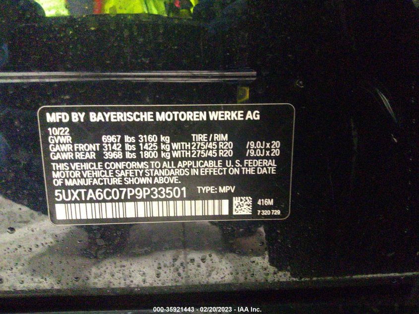 This 2023 BMW X5 (Blue) comes from a major insurance auction in the USA or Canada. All information on this page is linked to the vehicle’s VIN (5UXTA6C07P9P33501), which helps confirm where the car was listed and what condition it was in at the time of sale.