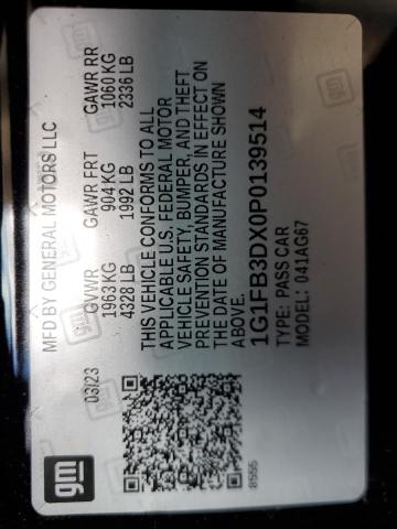 This 2023 CHEVROLET CAMARO (BLACK) comes from a major insurance auction in the USA or Canada. All information on this page is linked to the vehicle’s VIN (1G1FB3DX0P0139514), which helps confirm where the car was listed and what condition it was in at the time of sale.