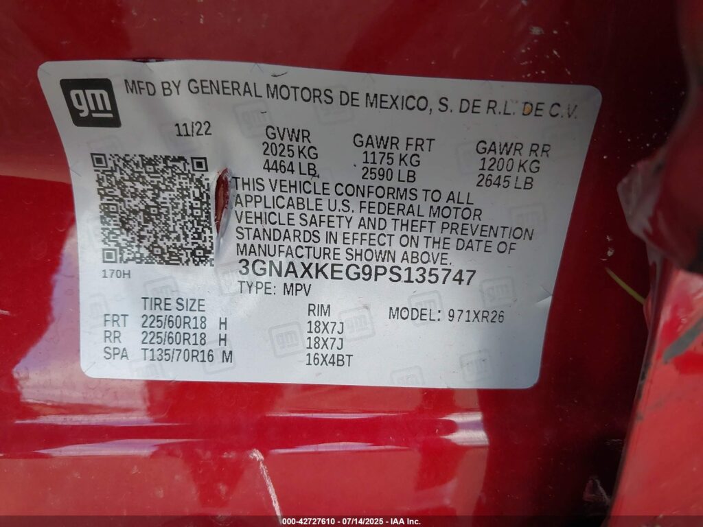 This 2023 Chevrolet Equinox (Brown) comes from a major insurance auction in the USA or Canada. All information on this page is linked to the vehicle’s VIN (3GNAXKEG9PS135747), which helps confirm where the car was listed and what condition it was in at the time of sale.
