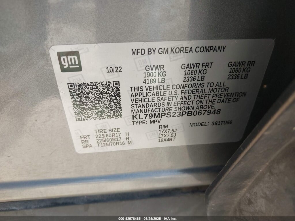This 2023 Chevrolet Trailblazer (Silver) comes from a major insurance auction in the USA or Canada. All information on this page is linked to the vehicle’s VIN (KL79MPS23PB067948), which helps confirm where the car was listed and what condition it was in at the time of sale.