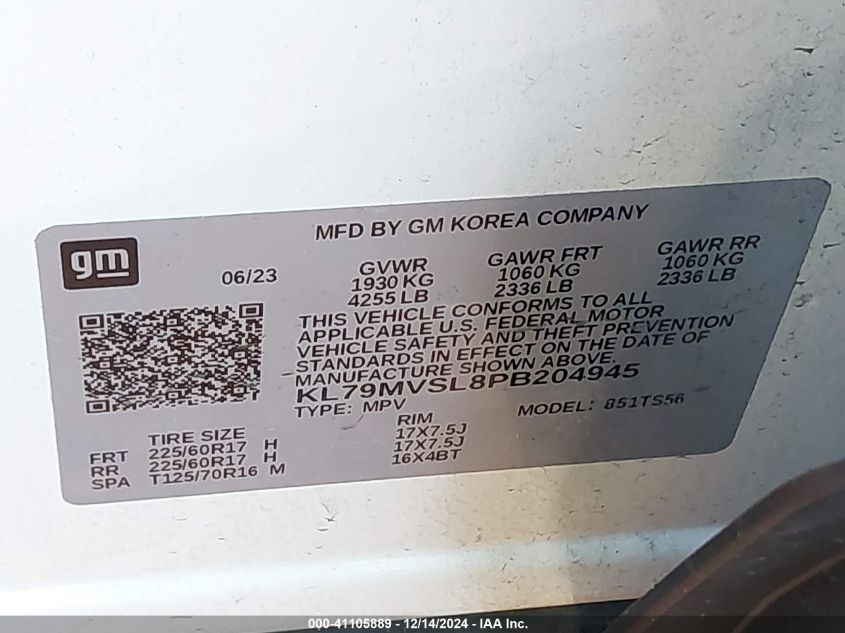 | VIN Number | KL79MVSL8PB204945 |