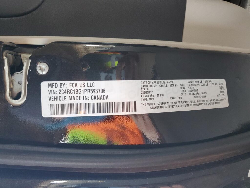 This 2023 Chrysler Pacifica (Black) comes from a major insurance auction in the USA or Canada. All information on this page is linked to the vehicle’s VIN (2C4RC1BG1PR593706), which helps confirm where the car was listed and what condition it was in at the time of sale.