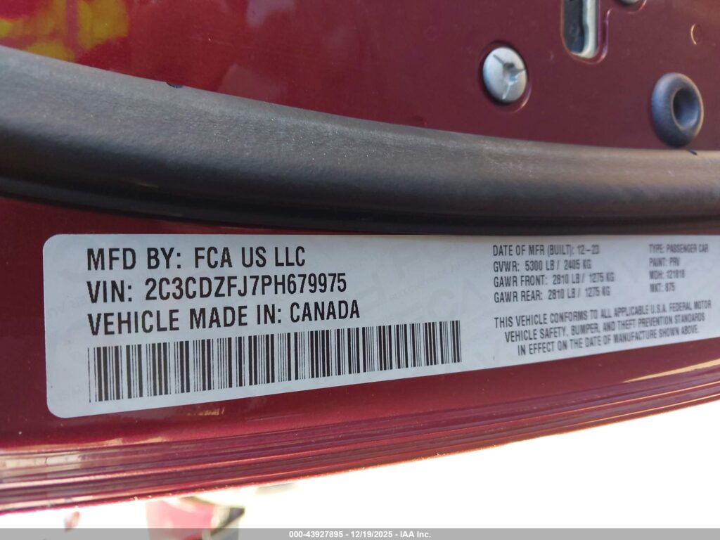 | VIN Number | 2C3CDZFJ7PH679975 |