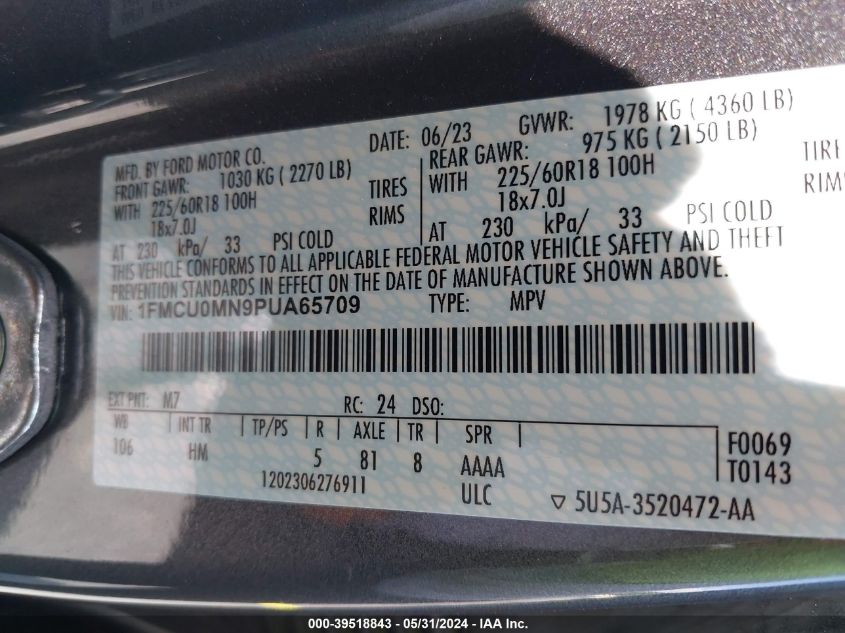 | VIN Number | 1FMCU0MN9PUA65709 |