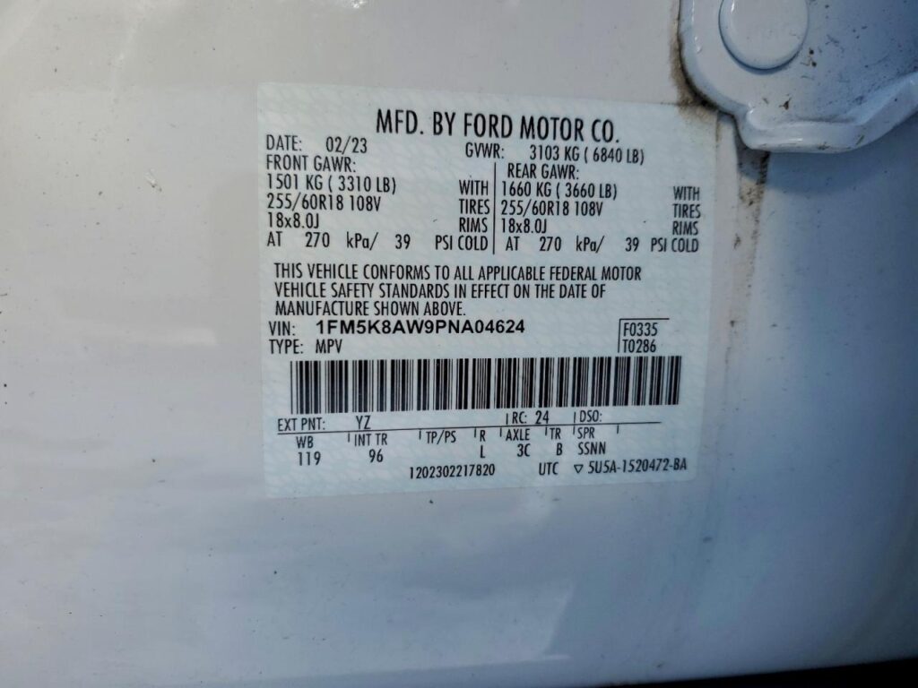 This 2023 Ford Explorer (White) comes from a major insurance auction in the USA or Canada. All information on this page is linked to the vehicle’s VIN (1FM5K8AW9PNA04624), which helps confirm where the car was listed and what condition it was in at the time of sale.