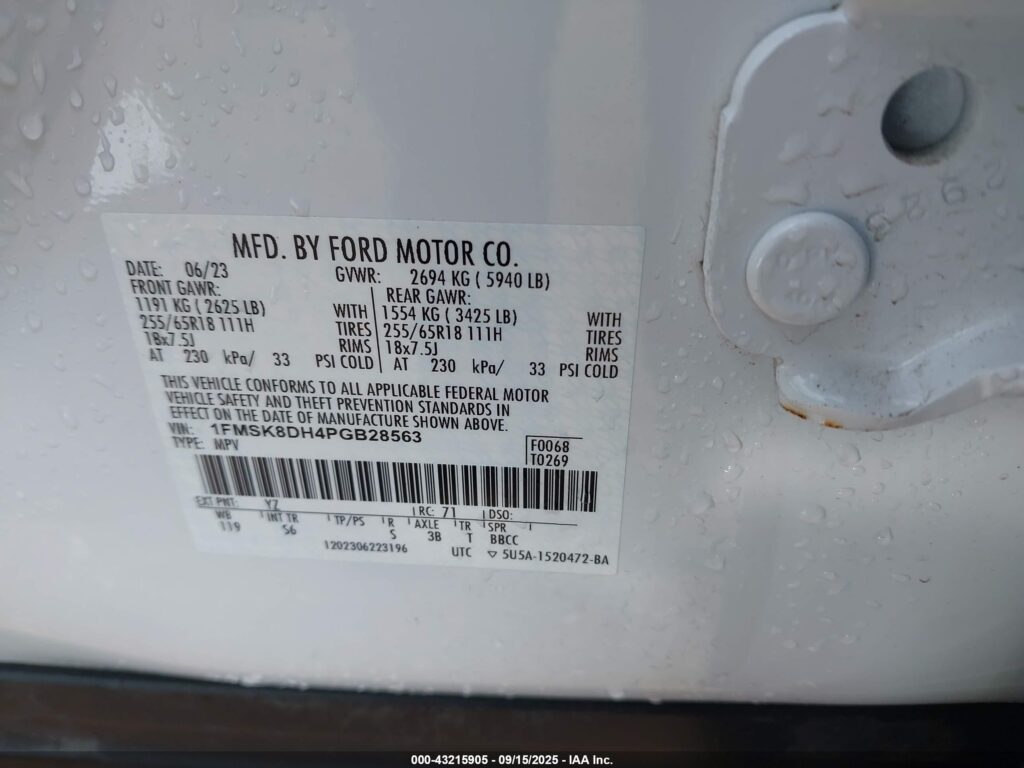VIN: 1FMSK8DH4PGB28563