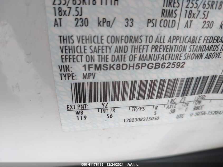 | VIN Number | 1FMSK8DH5PGB62592 |