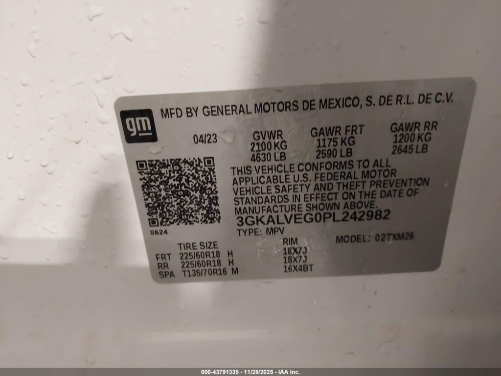 This 2023 GMC Terrain (White) comes from a major insurance auction in the USA or Canada. All information on this page is linked to the vehicle’s VIN (3GKALVEG0PL242982), which helps confirm where the car was listed and what condition it was in at the time of sale.