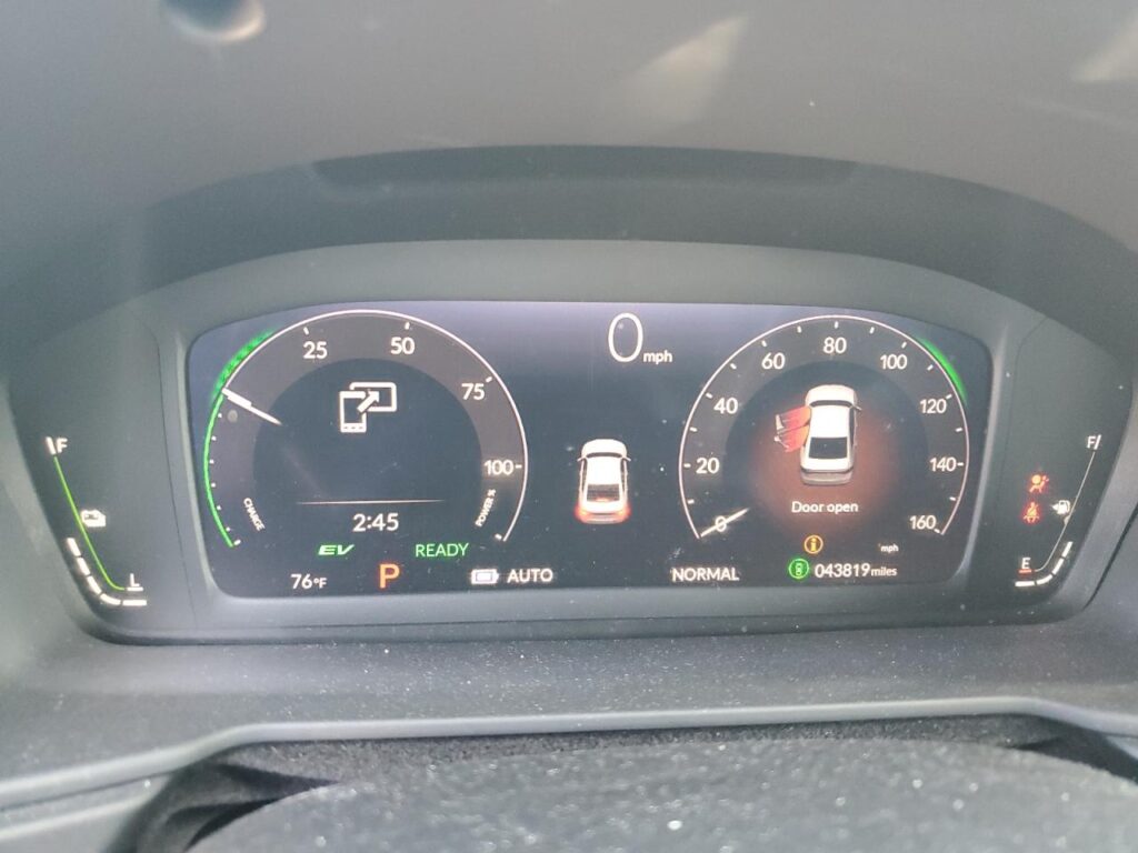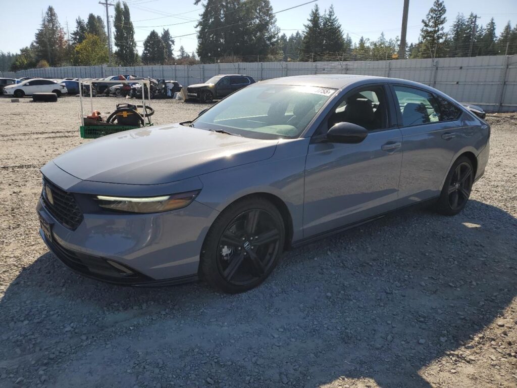 This 2023 Honda Accord hybrid sport-l (GRAY) is equipped with an engine designed to balance performance and efficiency. According to the auction listing, the vehicle had 43,819 miles at the time of sale.