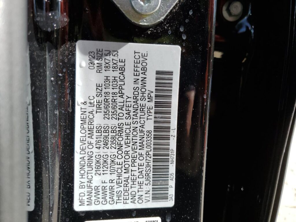 | VIN Number | 5J6RS3H72PL003358 |
