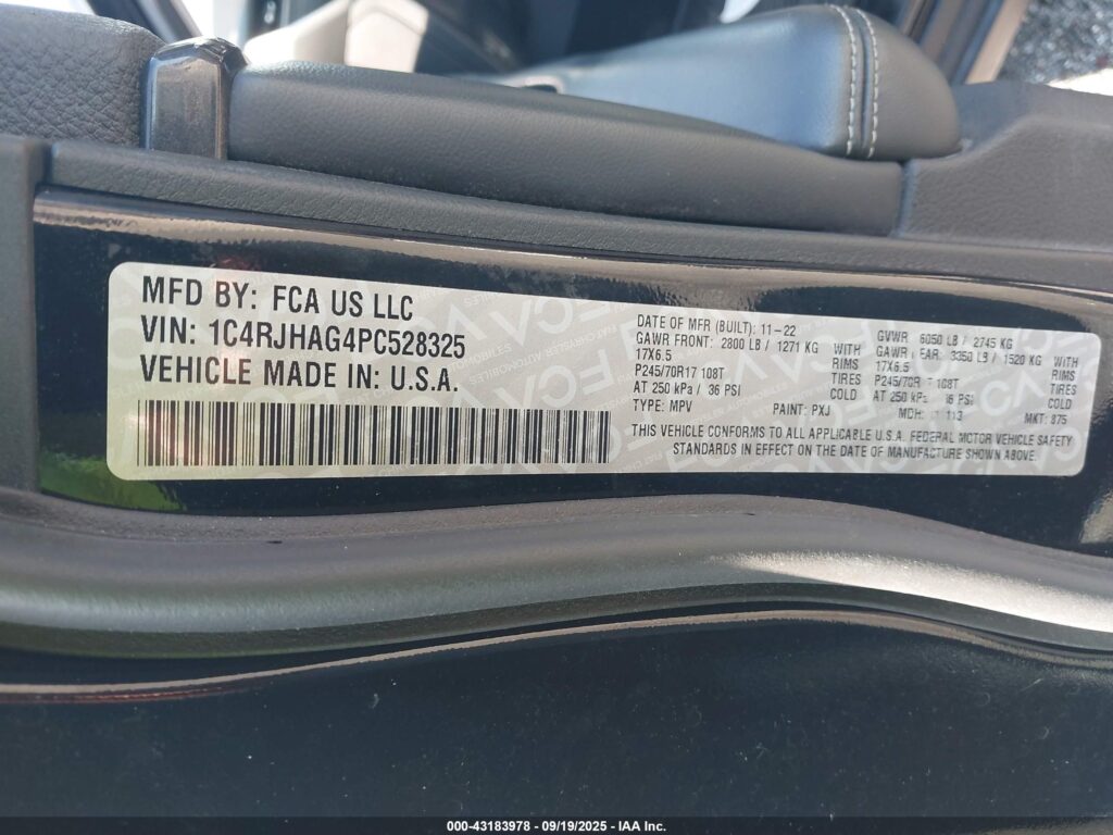 VIN: 1C4RJHAG4PC528325